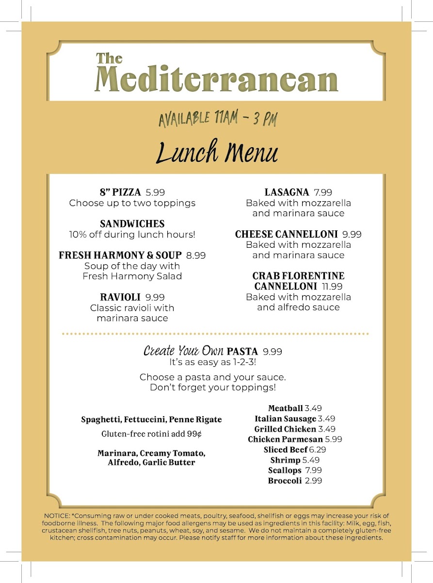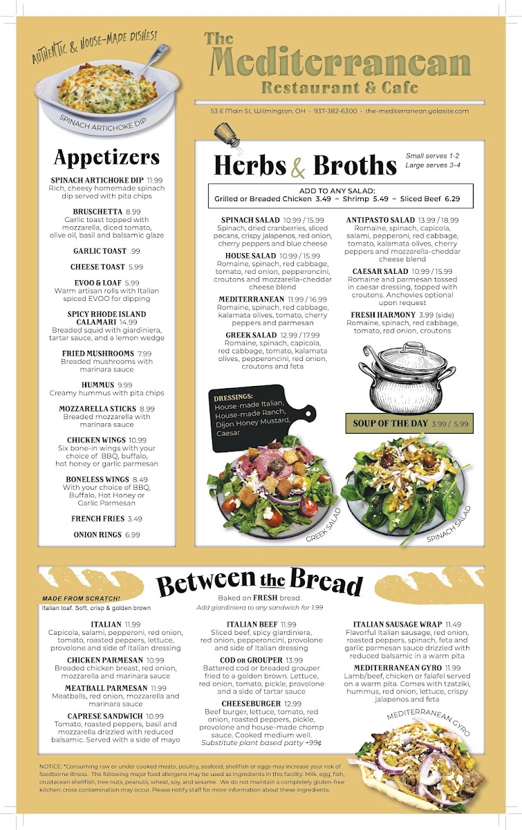 Welcome to the Mediterranean Restaurant, a culinary gem located at 53 E Main St, Wilmington, OH. Here, diners are treated to a vibrant menu that highlights the rich flavors of the Mediterranean. Many enthusiasts rave about their artichoke spinach dip, which offers a fresh take on a beloved classic, and their seafood manicotti that transports you to the coast with each bite.